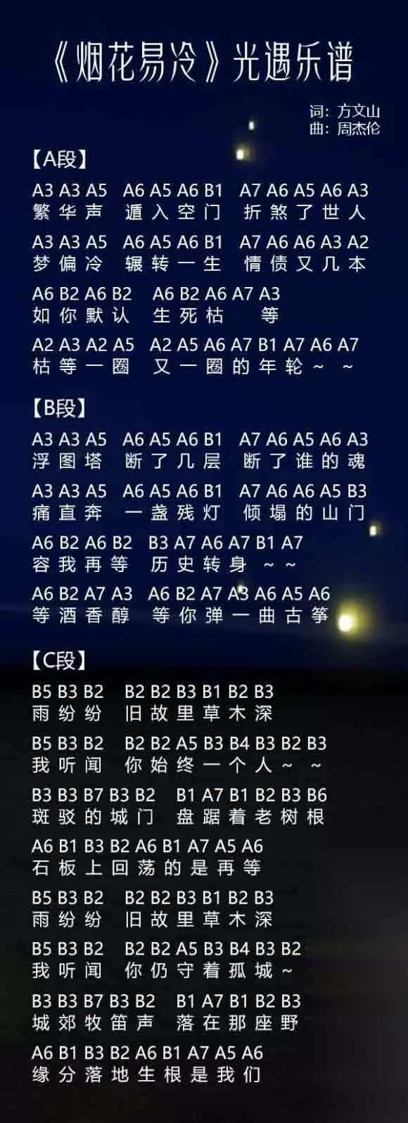 光遇乐谱烟花易冷