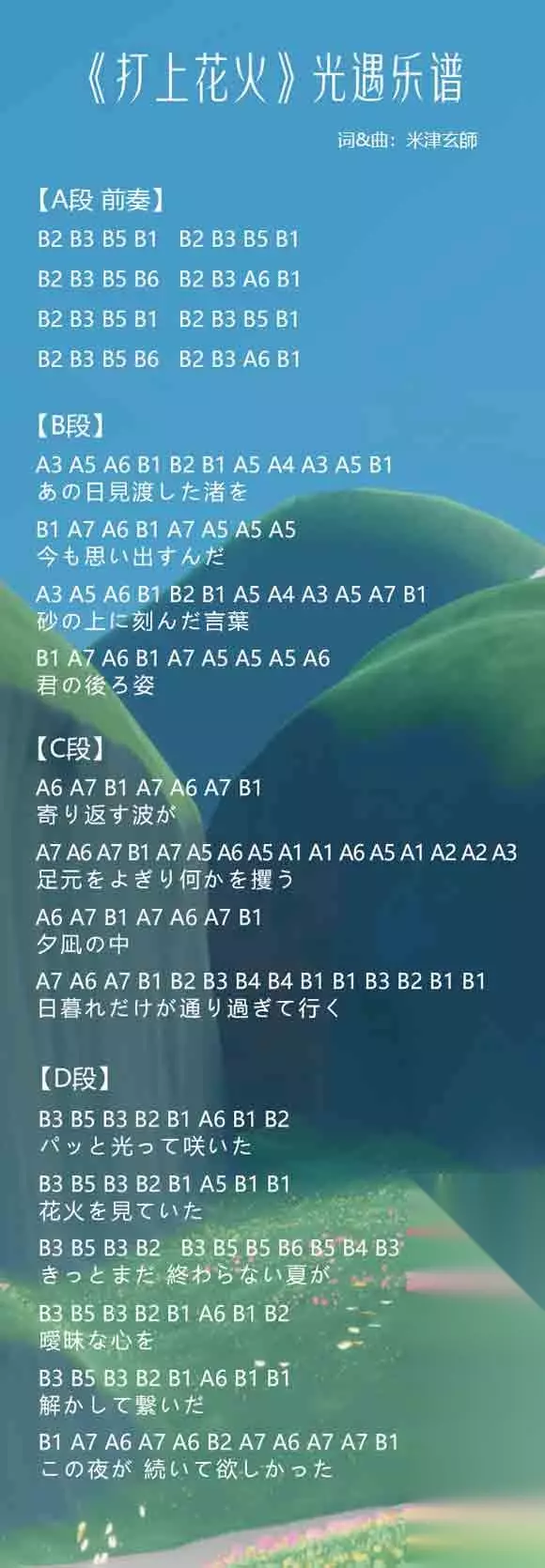 光遇乐谱打上花火