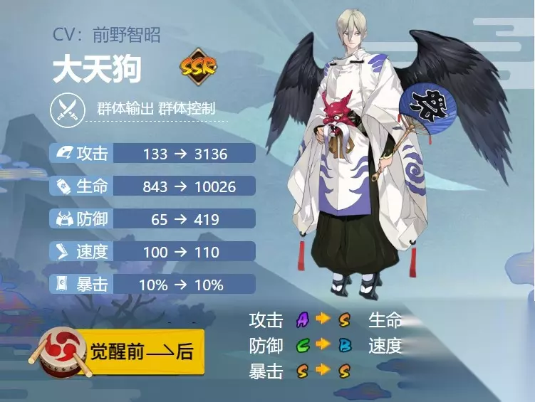 阴阳师大天狗御魂怎么搭配介绍方案一:针女×4,暴击×2 御魂位置: 2号位:攻击加成 4号位:攻击加成 6号位:暴击 点评: 大天狗搭配介绍针女是标配,大天狗也是多段输出型式神,触发几率高,可以增加伤害输出。 方案二:破势×4,暴击×2 御魂位置: 2号位:攻击加成 4号位:攻击加成 6号位:暴击 点评: 大天狗的输出高,暴击率和攻击都高,搭配介绍破势爬塔斗技都不错。 式神技能技能一:风袭(0火)