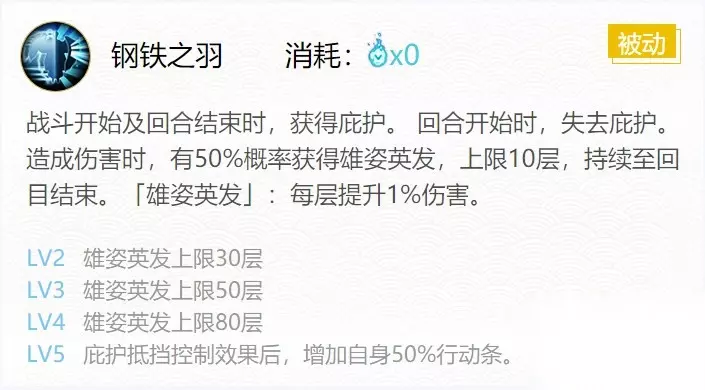 技能二:钢铁之羽(0火)
