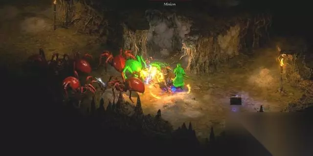 在《暗黑破坏神2》的第一幕的安达利尔的地下墓穴中,存在着这种让人掉san值得蜘蛛形怪物。很多对虫子反感的新玩家看到这种怪物时 不禁会感到头皮发麻。
