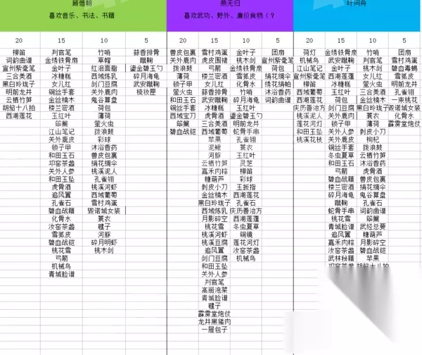 遇见逆水寒送礼攻略男版女版表格大全,如何查看送礼攻略表,想知道各男主结局和快速刷礼物技巧在哪查看的话,下面一起了解下吧。 【驿站小报答题器】 送礼表格如下,玩家可以自行查询: