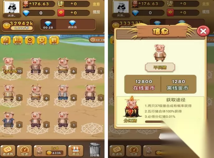 这属于以小猪展开合成的游戏玩法比较简单,在自身与拥有着很多小猪的环境以后,想要使小猪变得高级,利用合成的方法就能做到,也能帮助玩家有机会获得顶级的豪车,让小猪获得不一样的座驾。一开始的时候只是简单的买菜车,但却能凭借玩家不断的对小猪座驾升级等方式,拥有着外观炫酷的豪车,让小猪也走上巅峰。 手机扫码下载233乐园APP预约 预约订阅最新动态 优先233乐园APP下载 3、《快乐养猪场》