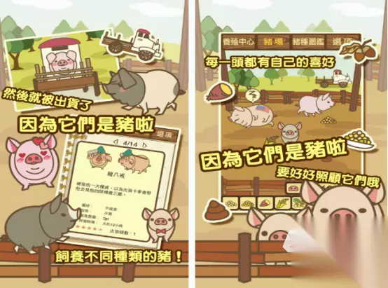 在大家喜欢玩的农场游戏中,基本上都能看到各种各样的小动物,其中就包括可爱的小猪。你能够经营养猪场游戏,除了融入了真正养猪场当中的环境,在画面表现等很多的方面,都是值得大家玩的。需要对其进行很好的照顾,更要以不断的增加养猪场的收入,而去做各种各样的努力。 1、《養豬場》