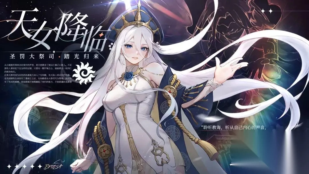 “众神皆被蒙蔽双眼,只有信仰自己才可获得救赎”一位新生的神明如是说道。 她正是光系SP辅助「圣罚大祭司」——将在本周继承天使意志,以信仰之名,降临冒险大陆!