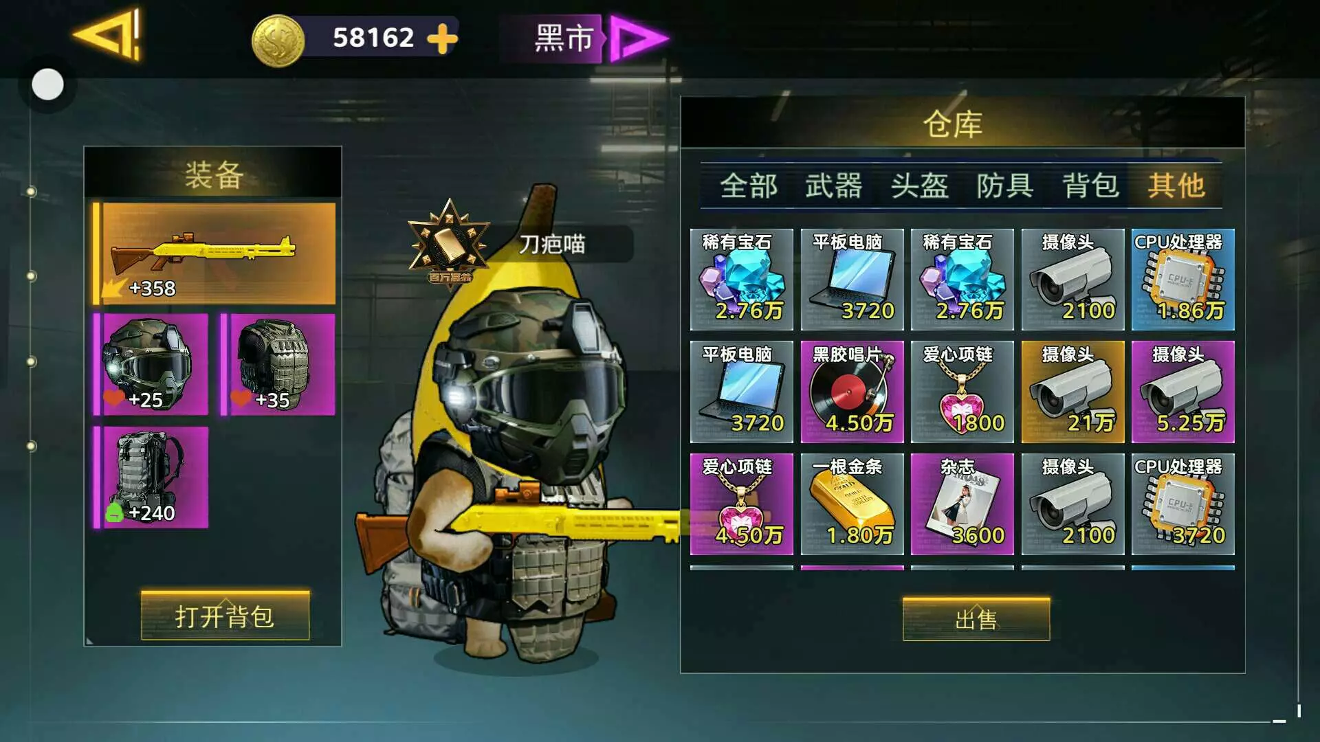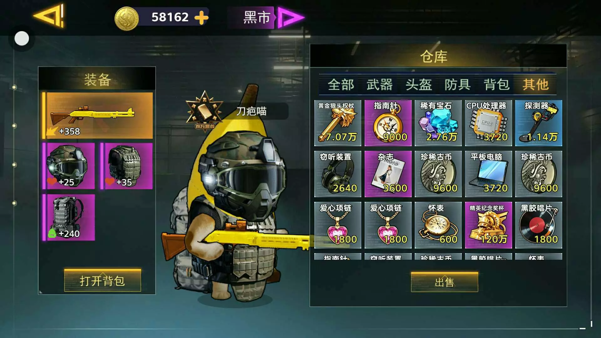 背包里的都是一局赚的500多万,摸出好几个紫也有几个大金,背包还没满就吃鸡了。后期只能用几个物品填背包了。