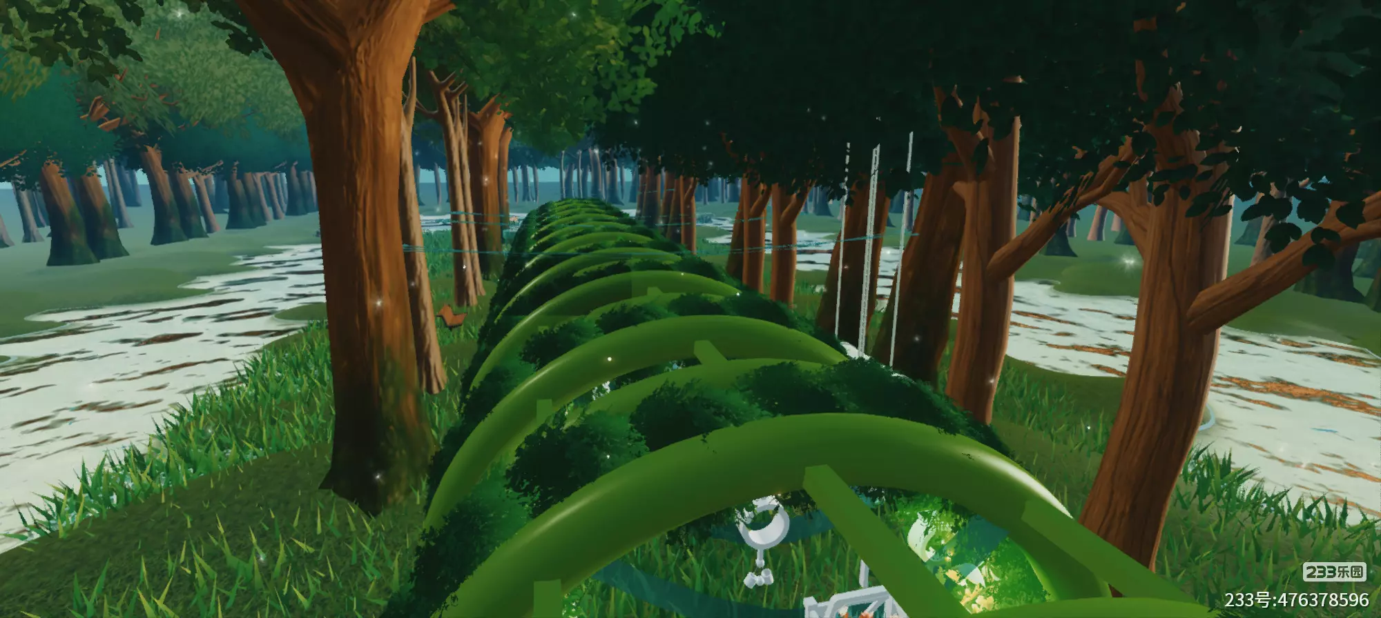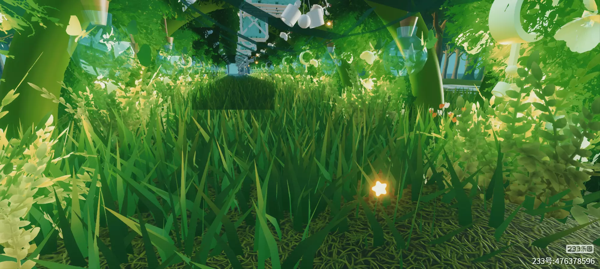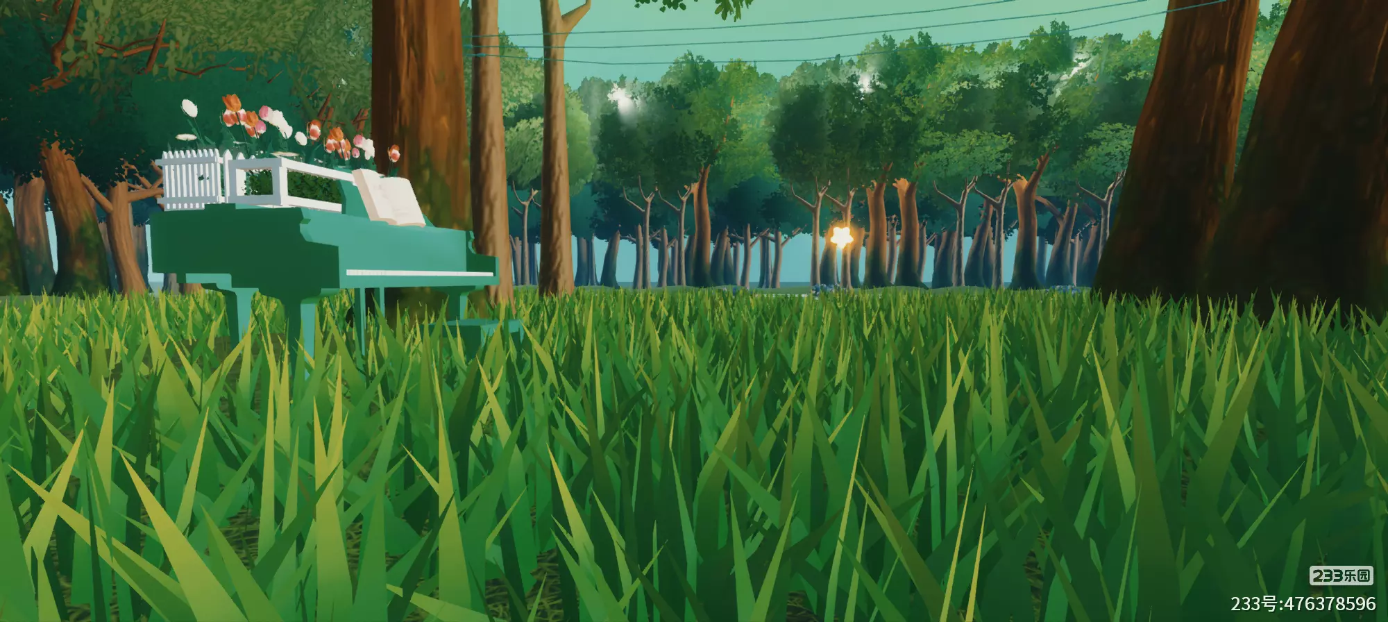 进去地图后一直往前走,有钢琴;途中还有秋千,公园木椅