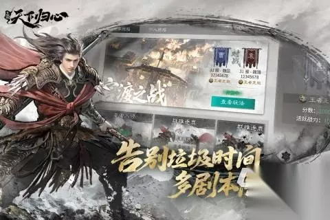 这款《三国之乱世为王》手游中我们能够去选择自由托管的方式,采取了轻量化的战争类型的玩法,以战棋的形式很好的表现了出来,还会有着水墨式的游戏画风被你们所见到,并且沙盘战局的组成也能让我们大吃一惊,肉鸽国战的玩法感受或许是我们第一次见到的,在这里即可被你们所体验。 手机扫码下载233乐园APP预约 预约订阅最新动态 优先233乐园APP下载 5、《三国:天下归心》