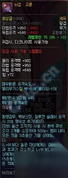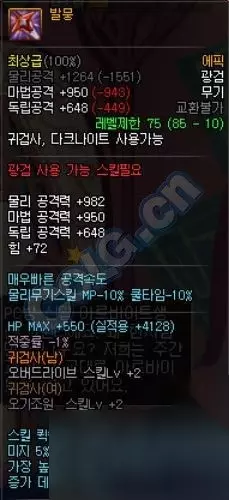 同样是85级的史诗光剑,一把是能够最多增加60%的黄字伤害,而另一把则是有条件的特定技能增加20%白字而已。