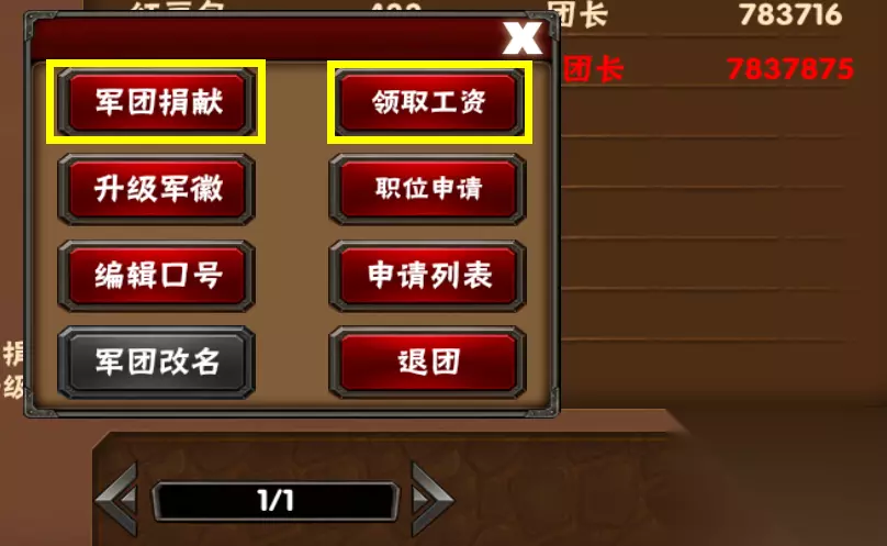 其中主要是军团捐献和工资领取 工资只有在军团中有职位的才可领取