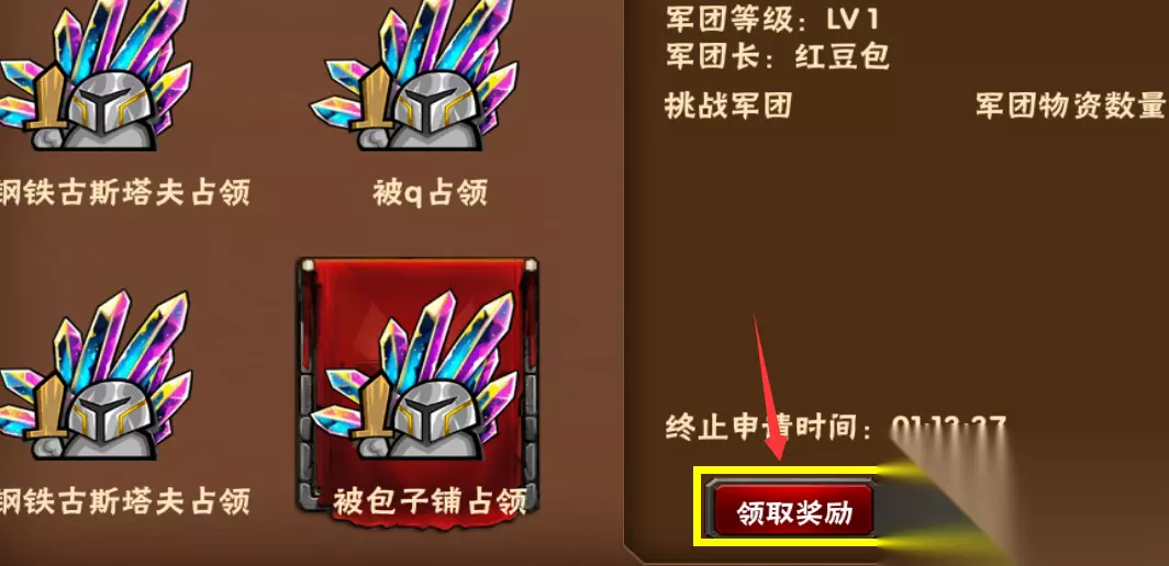 然后领取奖励(只能领取你所在军团占领的矿点) 如果你的军团没有矿点,可以让团长或副团长申请报名竞价(注意点击左上角问号查看具体规则) 提示:如果你的军团矿在第二页,需要通关第一页的图才可前往第二页