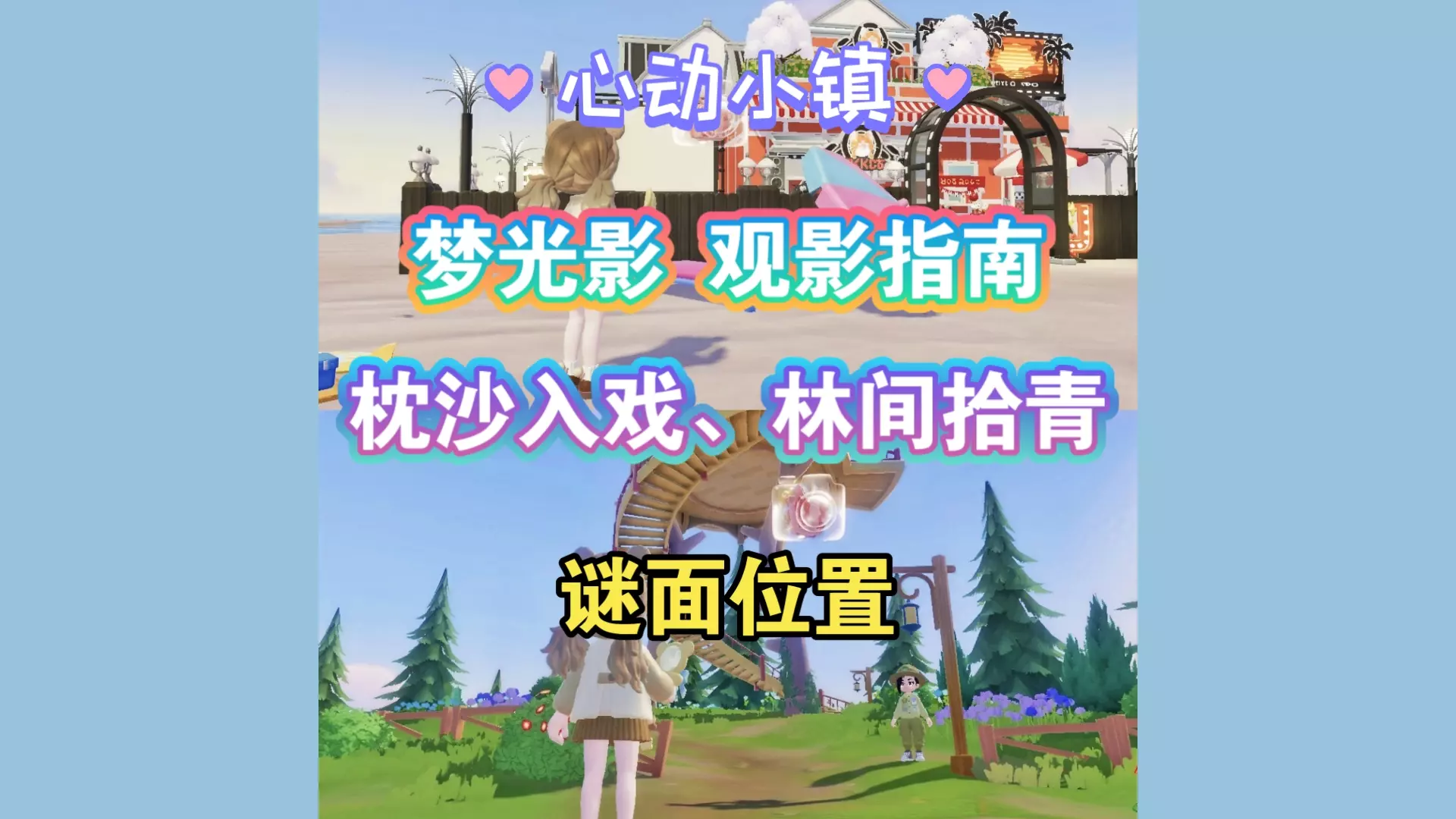本文介绍了模拟经营游戏《心动小镇》的梦光影庆典限时活动——观影指南,活动共3周,每周2个谜面,找到对应相机泡泡可得限定表情包。还给出了第一周【循香赴影】【最佳配乐】的谜面及前者的泡泡位置。