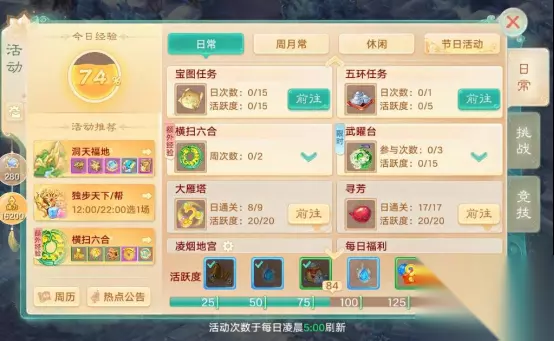 活动时间:2026年2月24日-2026年3月23日 活动说明: 1)活动期间,少侠在老服领取赏金贴后,前往2月24日-3月23日之间开放时间<7天的任一新服,即可领取新春赏金; 2)百万赏金分四次发送,每次都能领到1-10元现金红包,红包数量有限,先到先得。所有红包领取完毕,活动结束; 佳偶良宵 佳偶良宵,相知相伴!和你的TA一起来参加元宵灯会吧~ 1)双人组队前往即可参与元宵花灯会; 2)在场景中连续点亮一组同造型的花灯,即可永久点亮这组花灯; 3)当场景中的花灯全部被点亮或者倒计时结束后,就会结束游戏并根据点亮灯的数量发放奖励; 春锋靖野 春锋淬就天地光,靖野宁息万顷尘。境内小妖作乱,请少侠亮剑,还新春万物祥和。 活动时间:2026年2月24日5:00-3月5日5:00 活动说明: 1)活动期间,少侠可前往大唐境内,暗雷寻找藏匿的小妖; 2)活动需要1-5名少侠,单人或组队参与,组队效率更高哟; 3)每日前15次将会获得经验、道具奖励。之后只能获得召唤兽经验奖励; 4)活动期间,每日22:00-8:00还在活动中的少侠将自动激活"深夜在线"和“后台巡逻”特权; 鸿福特卖节 金蛇吐瑞辞旧岁,玉马奋蹄迎新春!一年一度的新春鸿福特卖节将于维护后开启,带来特惠礼包、全新飞行座驾伏羲天马、马年新春召唤兽照夜、全金奇珍武器幻肤金骧传世、奇珍时装羲皇耀光、羲皇耀夜及大量丙午马年新春限定外观,各位少侠敬请期待! 活动时间:2026年2月5日维护后~3月5日 充值有礼 活动时间:2026年1月29日维护后-3月5日5:00 活动简介:充值返利充值有礼活动进行中,各位少侠不容错过~ 1)活动期间,累计祈福值达标可获得祈愿次数,完成祈愿即可获得马年新春家具八骏图、限定表情包、头像框马踏千金、首发闪卡洗炼功能的典藏背景卡伏羲龙马出河图!