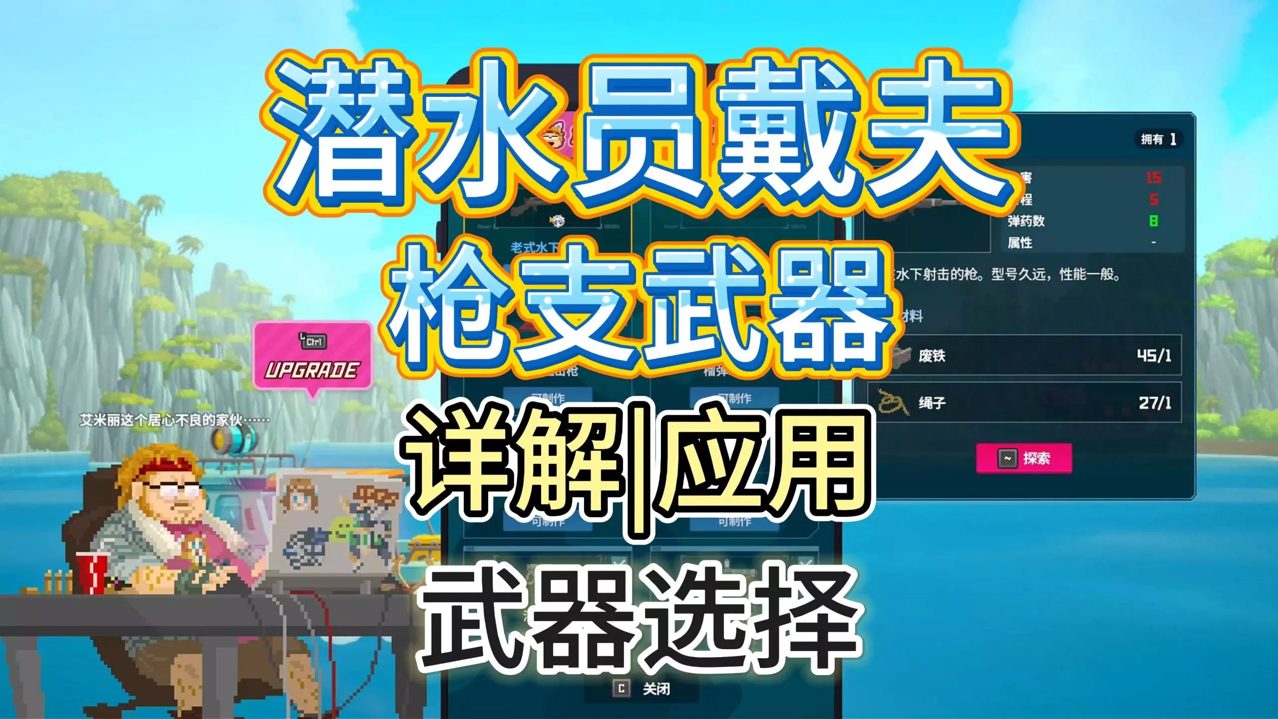 游戏平台:steam 游戏名称:潜水员戴夫 武器店的所有枪支的制作材料、属性、用法、实战以及推荐武器(哪个武器好用) 包括: 老式水下步枪 死亡步枪 爆裂步枪 …
