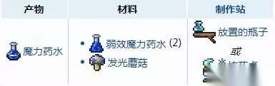 3.魔法药水可以从铁盒中获得。也可以通过炼金桌,用弱效魔法药水和发光蘑菇合成大自然的恩赐。