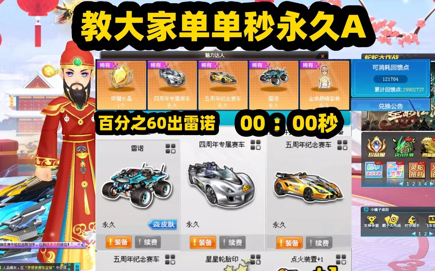 QQ飞车旭哥教大家回馈点单单秒永久A百分之60出普通雷诺永久时间段在00 :00秒就行