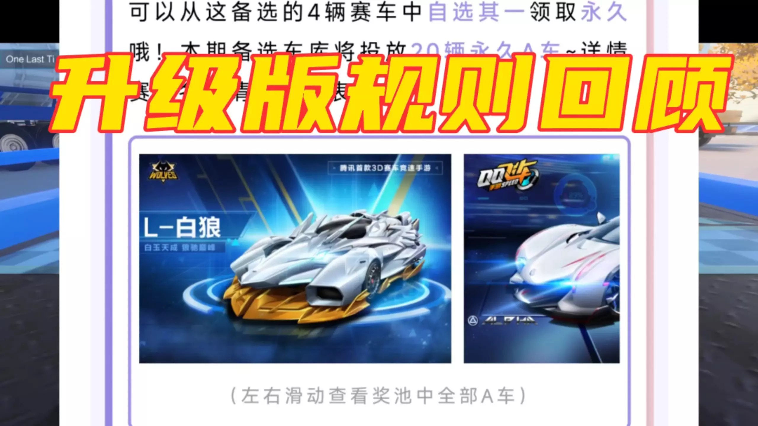 QQ飞车出了这么多年,白嫖道具也出了很多,下面小编就给大家介绍用什么方式白嫖到永久A车、永久机甲车、永久S车,永久座椅和宠物。 方式一,完成游戏开发商出的各种活…