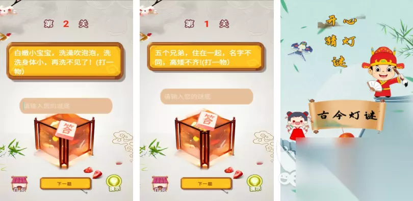 猜灯谜是一种老少皆宜的有趣活动,各种主题的灯谜设计会让大家脑洞大开,就连目前手机端都出现了一系列猜灯谜手游,那么免费的猜灯谜游戏前五名情况怎么样?本文提供的灯谜解谜手游都能提高智商,形形色色的谜题呈现也会令大家眼花缭乱,专注于智商锻炼的游戏性质可玩性更高。 1、《快乐猜灯谜》