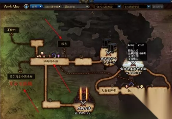 2、白色大地和圣殿贝里柯蒂斯 在圣域边界,从切斯特小镇和码头进入;
