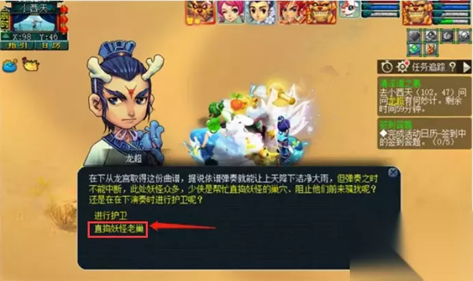 11、然后在龙超的对话中选择【直捣妖怪老巢】,就可以直接跳过等待进行战斗。 这里找到小妖后打败即可。