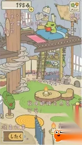 本篇将给大家介绍到: 1、界面菜单翻译 2、食物与道具作用 常见问题: Q:青蛙为什么不出门 A:要给青蛙准备好食物及道具,青蛙才会出门。 Q:青蛙为什么不回家 A:青蛙旅行时间和给的食物有关,有的时间长,有的时间短。如果没有给青蛙包裹里放东西,桌子上也没有准备备用的东西,这个时候青蛙是离家出走了,必须在桌子上准备好旅行用的物品,青蛙才会回来,否则青蛙永远也不会回家。 前期通过收集三叶草去商城买东西,有食物、幸运符、道具。青蛙带着这些东西就会出门旅行,然后旅行途中会邮寄照片,回来还会给你带当地的土特产。 佛系养蛙游戏《旅行青蛙》攻略大全 界面菜单翻译: 1、界面分为庭院和室内 2、庭院内上方为【主菜单】,包括【现有物品】、【记录】、【帮助】三个子菜单