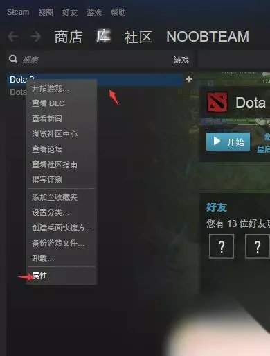2.右键dota2,选择属性