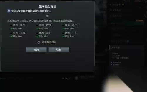 6.选自动,地区。我们就能看到供选择的服务器都是国服了。如图