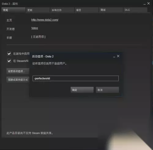 4.再输入栏中输入“-perfectworld”,确定。就设置成功了