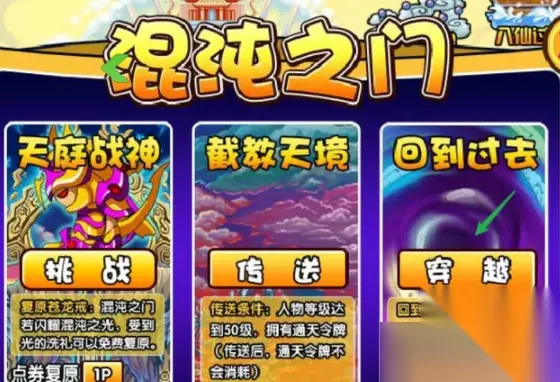 1、进入游戏之后,在天庭地图页面点击“混沌之门”进入;