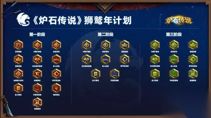 我们的计划包括了扩展包、季节性活动、酒馆战棋更新、一个全新游戏模式,还有更多内容尚在规划中。你可以在下面的计划图中看到我们将在今年推出的大量内容!