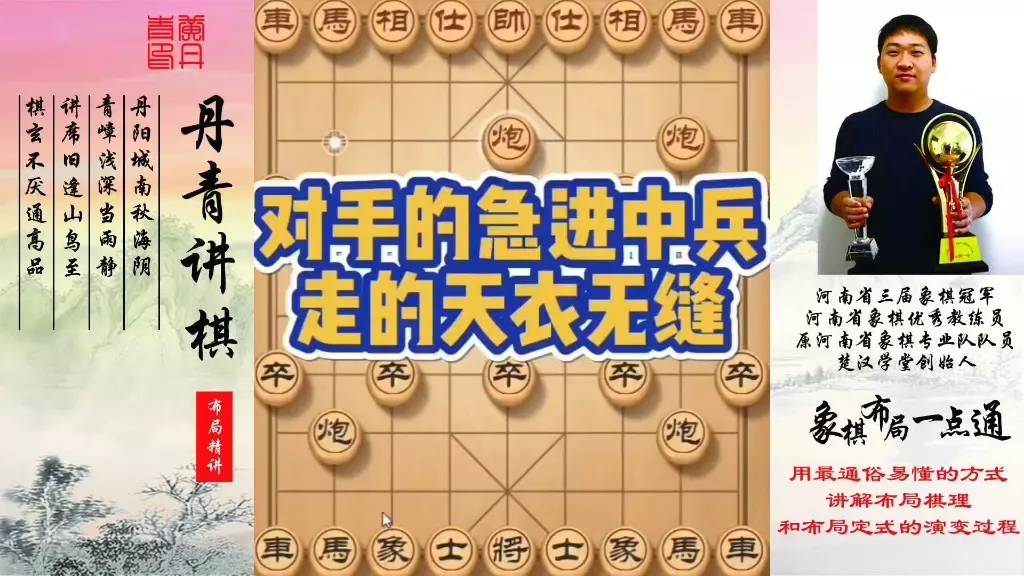 对手的急进中兵走的天衣无缝!如何快速提升象棋水平?如何学习象棋布局、中局、残局?河南省象棋冠军黄丹青全套象棋课程!真心教棋,少走弯路,带你上业九,不上业九不罢休…