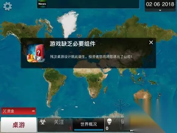 今天 233乐园和大家讲解《瘟疫公司:进化》剧情模式极致 桌游试玩图文战报 极致桌游好玩吗? 新增加的极致桌游模式相信还是有非常多的玩家不是特别清楚,所以今天小编为大家带来的就是玩家“茶罐儿”分享的瘟疫公司剧情模式极致桌游试玩图文战报,第一次接触这个模式的玩家不妨点击进来看看怎么样吧。 剧情模式极致桌游试玩图文战报 这个剧情模式可以说是非常创新了。背景是投资者设下两年期限内让你设计、生产并且发行一款桌游,这个模式与病原体毫无关系,没有解药,得分计算方式和其他剧情模式完全不同,甚至整个模式的机制、玩法也是PI首创。 本模式没有基因选择,进入游戏之后的界面也和普通病原体不同,DNA变成了“资金”,受感染人数和死亡人数分别变成了“关注人数”和“销量”,起始国家叫做“公司驻地”。