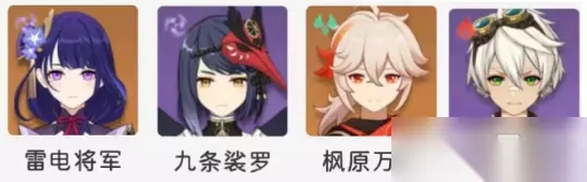 雷电将军+九条+万叶+班尼特 可曾听闻那五香的一刀,作为原神中上限最高的配队之一,雷九万班拥有原始人配队中最极致的输出。队伍以三拐一的模式,为将军提供大量增益,使其可以站场在短时间打出高额爆发。对队伍角色的练度有较高要求,非二命将军,需要满命九条来弥补才能有不错表现。 如果你有较充足的资源,可以尝试练一练,反之则不推荐,培养成本大高。 配置要求:最低门槛需要满命九条或二命将军才能启动,九条需要220%充能保证循环,万叶130%即可。 这里强调一下手法(将军开E,切九条E给怪染雷元素,万叶大招扩雷,切班尼特放大招,九条大招,切出将军,吃到所有增益,劈出奶香一刀) 雷神超载队