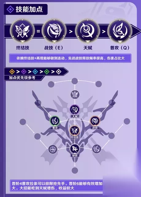 点击查看:崩坏星穹铁道全角色攻略大全 1、希儿技能加点推荐 希儿的终结技与战技都可以考虑优先加,然后加点天赋,最后选择普攻,晋阶4普攻拉条可以极限抢先手。晋阶6能够有效增加斩杀线,收益较大。大招能吃到天赋增伤,收益较大。