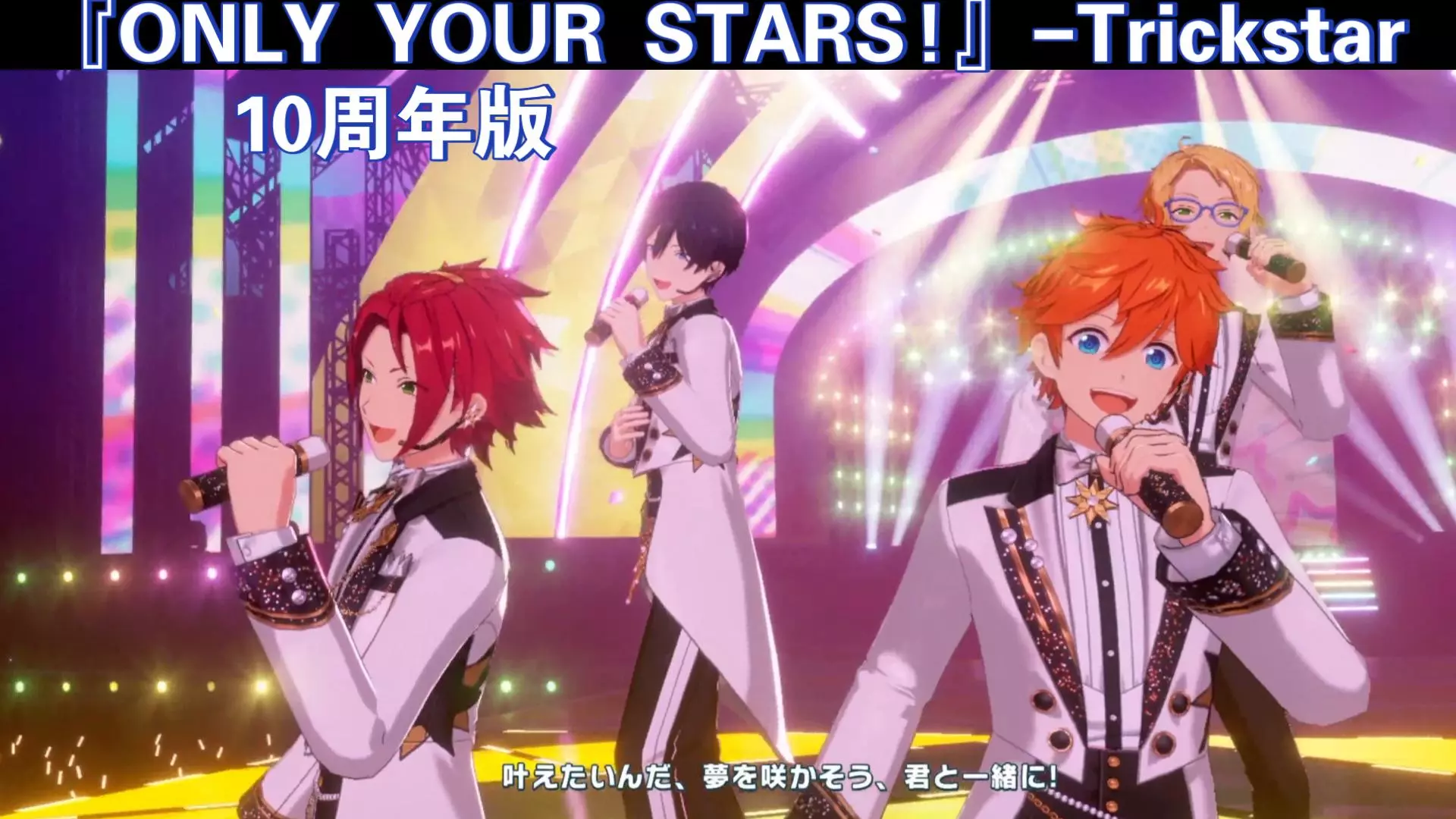 这是《偶像梦幻祭!!》的10周年相关内容,推出了ES全明星演唱的歌曲《ONLY YOUR STARS!(10th Anniversary Mix)》,视频呈现了偶像们在舞台上表演该曲的精彩画面。