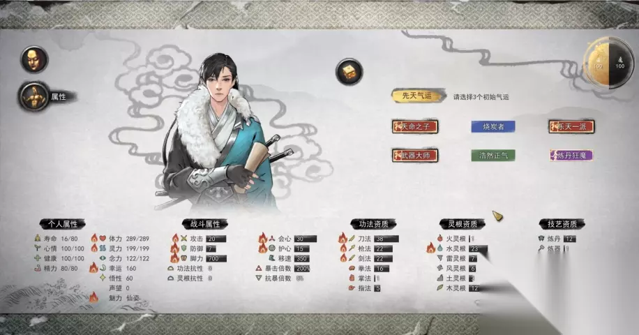 开局就拿到三个红色先天气运(三红),咱们得先做好准备工作。进游戏创建角色时,系统会给你随机分配九个先天气运,其中红色品质的最强力。要想刷出三红,耐心是关键,因为全靠反复重掷骰子来碰运气。建议提前想好主修方向,比如玩剑还是玩刀,这样刷属性时更有目标。捏脸阶段别忘了把魅力值拉高点,这样前期和NPC打交道会顺利不少,省去很多麻烦事。属性方面,悟性排第一位,它直接关系到你学秘籍的快慢和消耗资源多少;攻击力紧跟其后,毕竟打怪效率很重要;最后再考虑灵根资质这类专项属性。咱们可以预存几个喜欢的角色模板,方便反复尝试刷骰子,不用每次都重新捏脸。