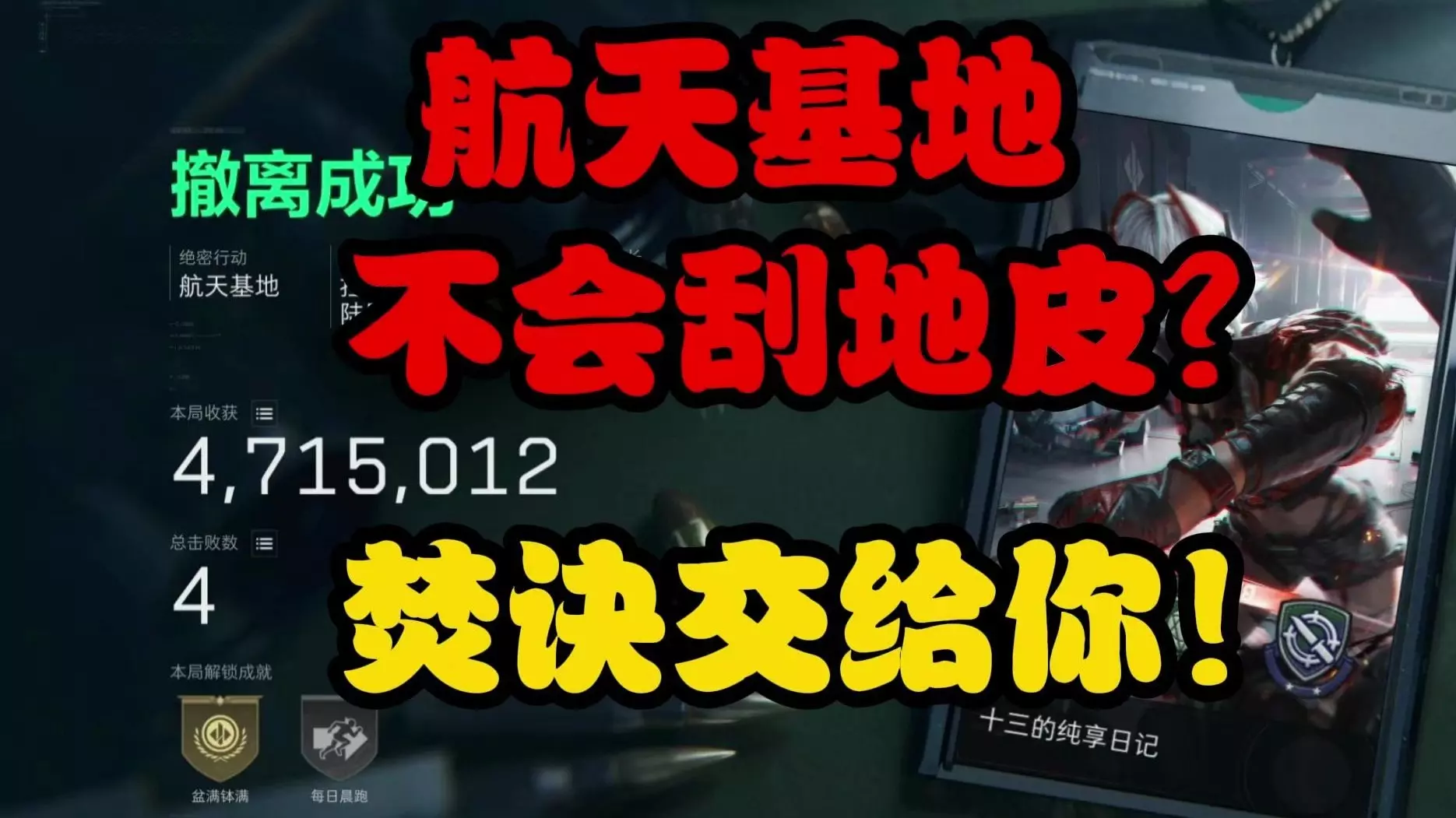 这是《暗区突围》刮地皮第四十六期内容,展示了赛季最后一天的游戏过程,包含搜索“理想国”藏品情报、搜刮物资、整理仓库、在商人处购置武器等游戏环节。