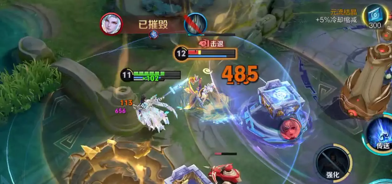 还有个小技巧,因为大禹的鼎属于机关单位,所以是可以利用传送进行传送的,包括队友,但是边路的传送阵并不能传送,传送期间,无论是使用被动技能,还是传送,被传送的鼎都会处于无敌状态,与正常使用传送的机制一致。