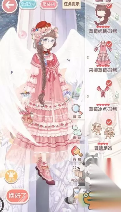 >新手: 【发型】小鹿/音乐公主 【连衣裙】茶话会/水母小姐 【袜子-袜子】镂空花袜 【袜子-袜套】戏重樱 【鞋子】红豆沙/花季 【头饰·发卡】洗沙 【手饰·左】月桂手环 【特殊·尾巴】金福猴尾 使用采撷草莓套装可轻松过关。搭配了外套与手持物,运气好点可能是一万四,运气差点也不会掉一万。 如转载涉及版权等问题,请作者与我司联系,我司将在第一时间删除或支付稿酬。