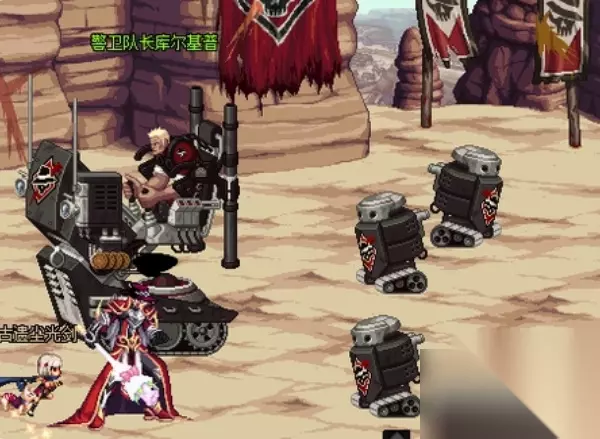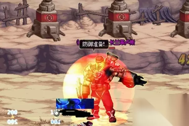 三、绿名是巡查队长贝拉。 这个绿名怪只能通过地上的炮台来打,通过方向键来控制瞄准,AX两个键发射火箭弹攻击他,他过一段时间会定在原地引爆炸弹,疯狂点AX可以击破他的状态,如果没能成功就按Z跳出炮台。 四、绿名怪是警卫队长 他的伤害有点高,但是防御不高,很好解决。
