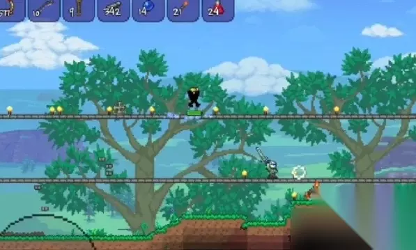 泰拉魔刃的面板基础伤害只有二十三点,但是基础暴击百分比达到百分之四十一。并且这把主武器也是在通关血肉之墙之前,唯一一把自带特殊近战攻击方式的装备。使用泰拉魔刃在攻击时会朝着本体的朝向进行持续性斩击,在每一段使用时间内都可以利用斩出的剑气造成五次片刻的无敌帧。所以在实战中使用泰拉魔刃攻击敌方单体目标的话,几乎每一秒都可以稳定造成十二段独立伤害。