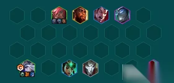 一、阵容站位 瑟提放艾希同侧,技能控制配合艾希可以瞬秒前排。可以同侧打菲奥娜和枪手霞放另一角,技能可以偷到后排,烬和卡尔玛放中间位置吃嘉文四世控制。