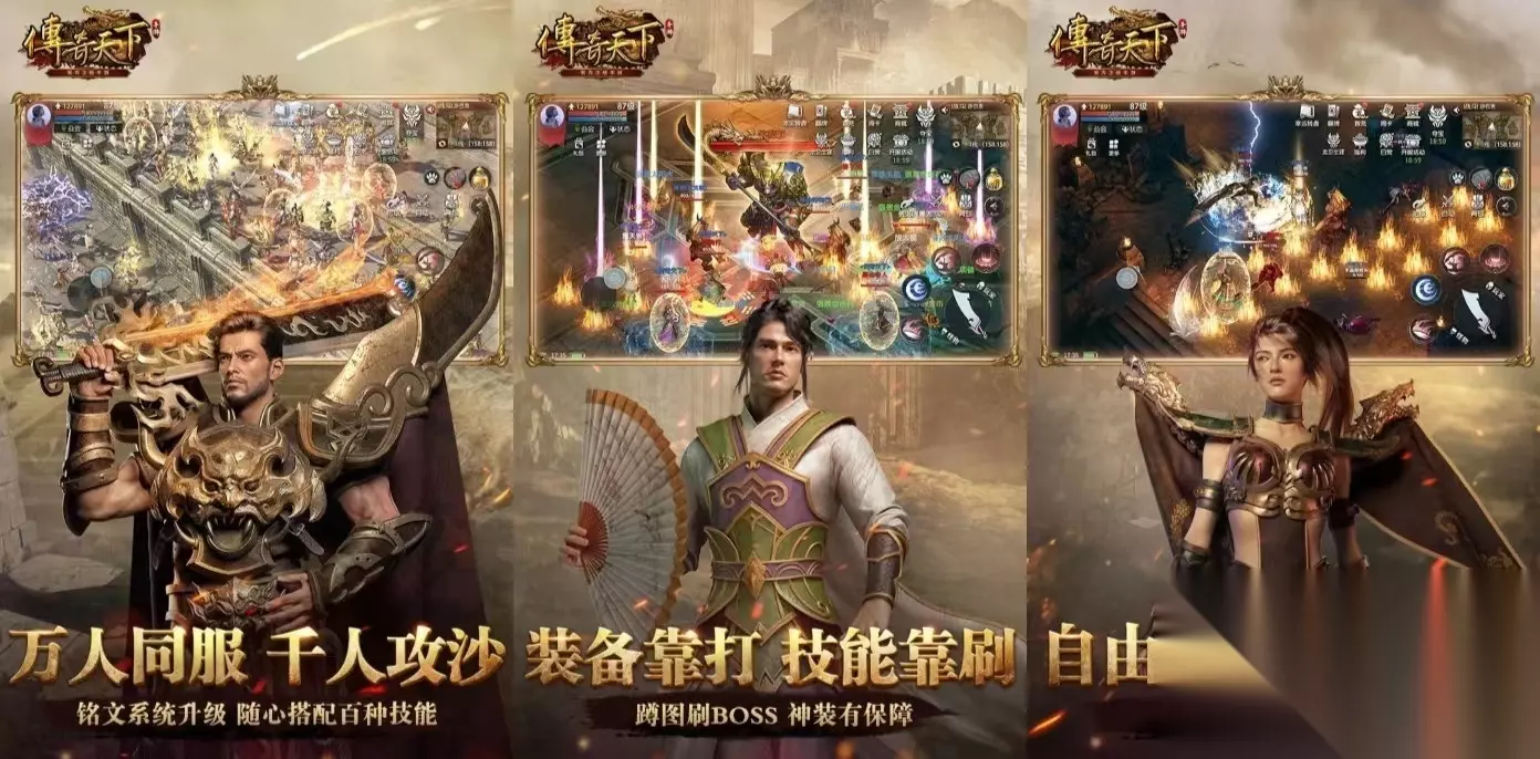 《一刀传世》玩家能看到满满的热血感,在地图中有大量的魔龙,还有很多古代的遗迹。游戏里面对抗的时候可以有上万名勇者,玩家可以和玩这款游戏的各个玩家进行互动,跨越千里去进行PK或者合作,在攻城的时候也可以一起齐心协力。玩家在离线的时候也能轻松的获得高装备,即使是挂机玩家照样会获得超高收益。 扫码下载该游戏 高速下载 普通下载 优先233乐园APP下载 4、《传奇天下》