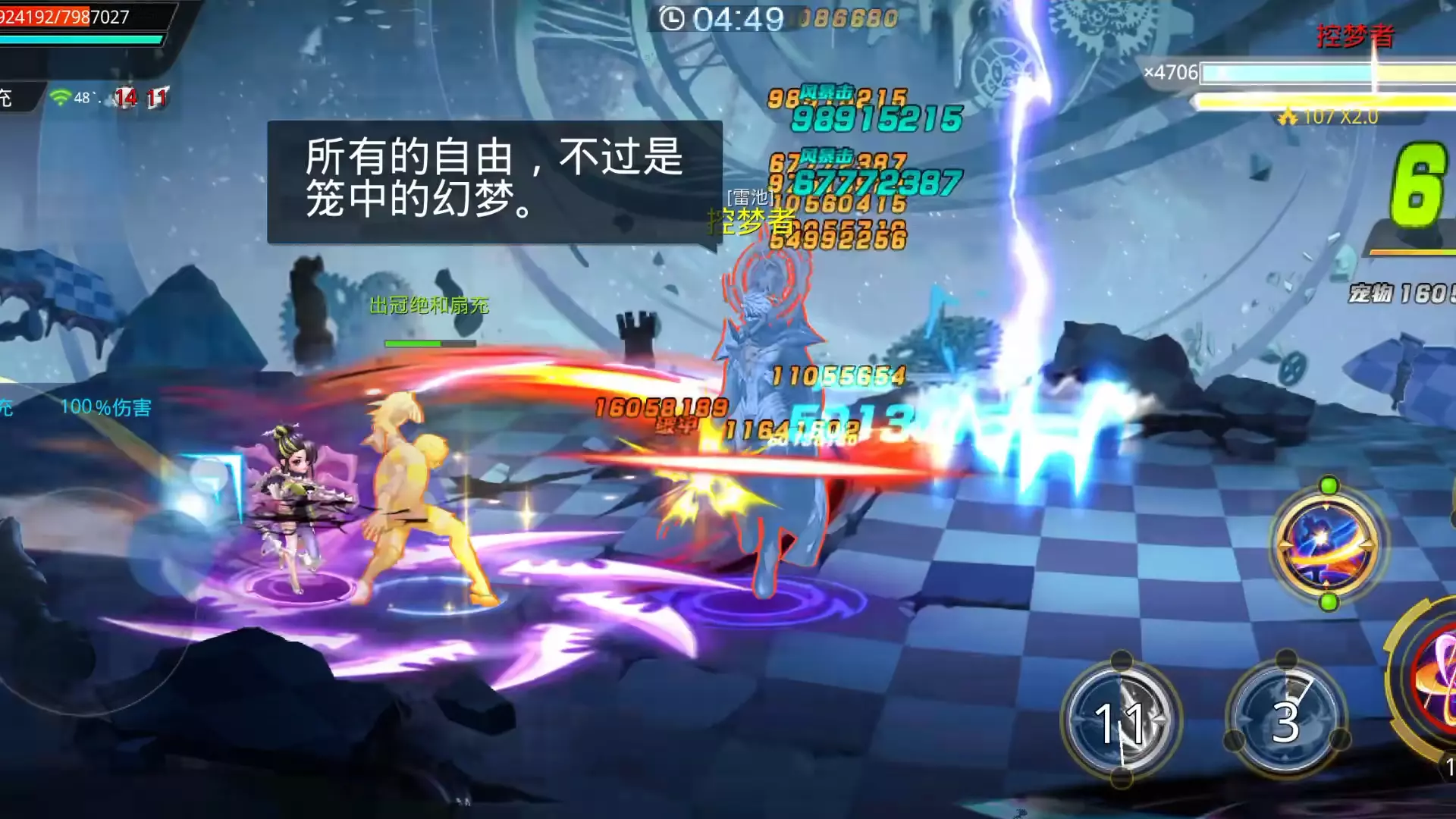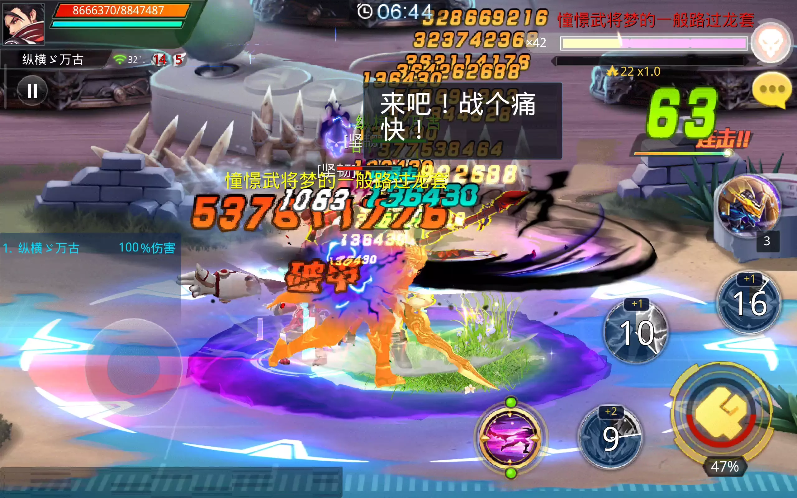 这是《天天炫斗》的游戏实况,展示了玩家在副本战斗中打出五荣耀伤害的过程,画面呈现了战斗中的高连击、高额伤害数值,还有对战鬼神吕布的精彩战斗场景,以及游戏主城界面。