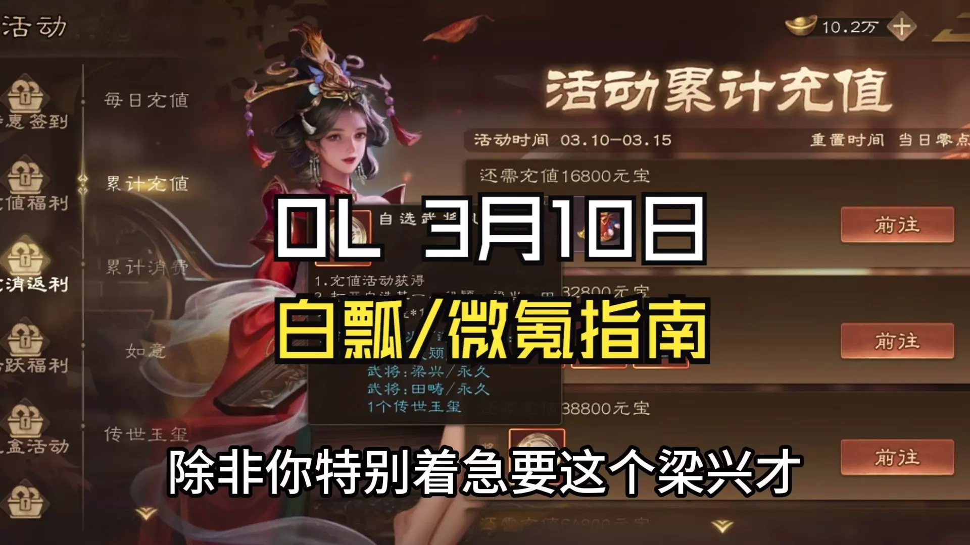 三国杀OL 3月10日白瓢/微氪指南