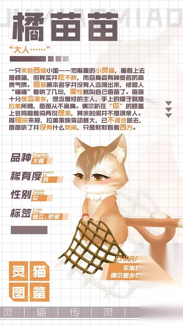 —————— 《灵猫传》是一款具有华风特色的轻甜剧情手游,唯美的观感为你代入一个写意浪漫的华风世界。.....由阿杰、苏尚卿、杨天翔、金弦、钱文青组成的一线配音阵容,呈现给你最有代入感的“声”动羁绊。