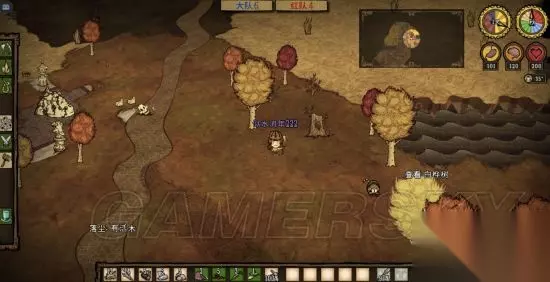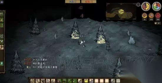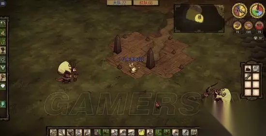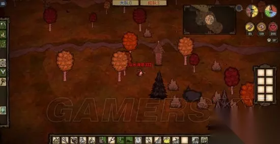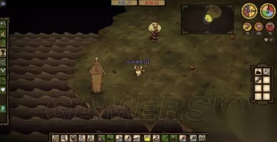 第一天晚上要做的事,快天黑时找一个有树的地方,先做一个火把,做好一本,首先做一个背包,路上一定要把萝卜浆果采了,虽然她只吃肉,但是蔬菜是做肉丸必不可少的,一块肉三个蔬菜是一个丸子。多汁浆果有格子放就采,没格子就算了,毕竟多汁浆果坏的比较快。烧5到6棵树,做一把斧头,黑天了烧着树照明砍树,等天亮了树也烧完了,把烧的树砍了就是木炭,6个木炭一口锅,接下来就是做一口锅,三个蔬菜一个肉开始做丸子。白天如果遇到浣熊猫或蜘蛛比较好打的生物就打几块肉,留着做丸子用。 进图自带两块大肉,打几个怪物肉或大肉的做3到5个丸子没问题。还有小肉来源就是打鼹鼠,看到鼹鼠后在地上放一个石头,鼹鼠会去吃石头,一下就打死,刷肉很方便,也可以杀火鸡,看到火鸡在地上放一个浆果,它会去吃,吃的时候也可以打死它,这个有点难度,不推荐。做丸子的时候不要闲着,有金矿就采金矿,有蔬菜就采蔬菜。前期发育节奏必须要快。几个丸子做好了做一个锤子(必须做,砸猪屋用),把一本砸了,锅最好留着吧,砸了后木炭石砖要占两个空格没必要,也许一会转回来还用得上。 ps:上面是你不想回家的基础上要做的,感觉如果跑偏了,当时的地方应该不会再来了,可以按b键回家。把上面的东西建在家里。我一般不回家,玩这个前期不要太依赖队友,都很忙谁管得了你?打字问有没有材料的时间什么材料都有了。到现在肉丸、锤子背包都有了,所有东西已就绪,一般3天饿不死了。接下来就是找猪屋,这是最关键的,所有的准备都是为了找猪窝,不回家也是为了能快速找到猪屋。