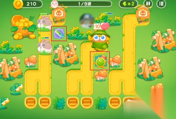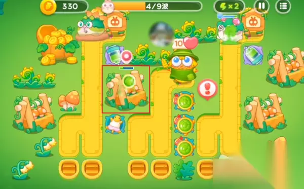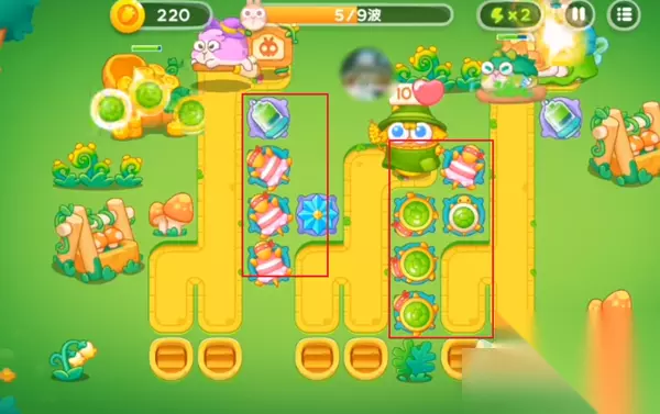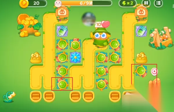 4、第五波吧中间的区域放满乌龟壳,并且升到满级,最好在旁边放一个减速的。