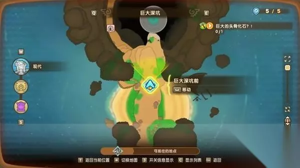 瞌睡龙腿骨、身体、头骨化石获取方式 一、传送至现代-巨大深坑-巨大深坑前,见下图