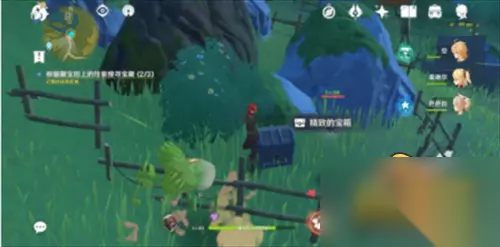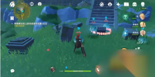 一号宝藏的位置在下图所示的位置,但旁边有三个愚人众先遣队成员,可以不用管他们直接点击挖掘就可以了,如果觉得烦你也可以先动手再挖,我就是后者( ͡° ͜ʖ ͡°)✧